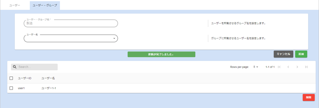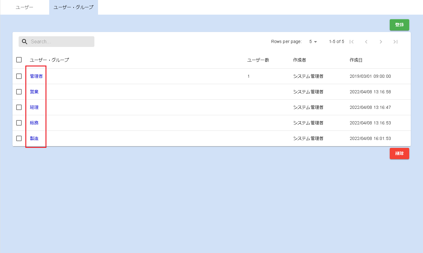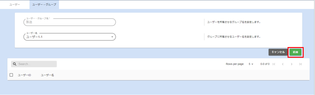 - ユーザー・グループ名入力欄にユーザー・グループ名を入力し、登録ボタンをクリックします。