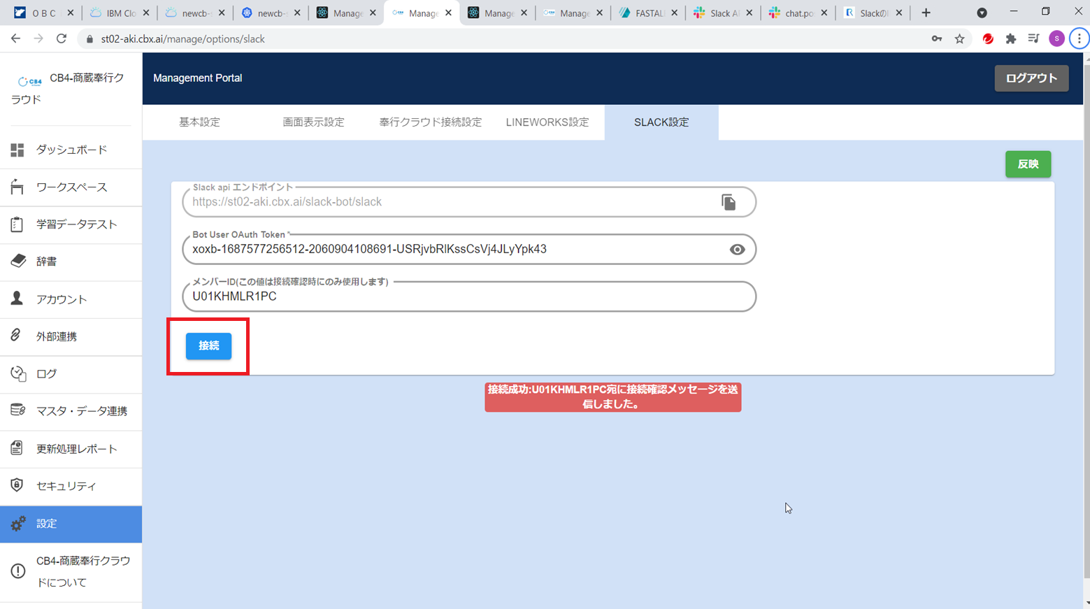 7Slackの設定画面に接続確認ボタンを設置管理画面