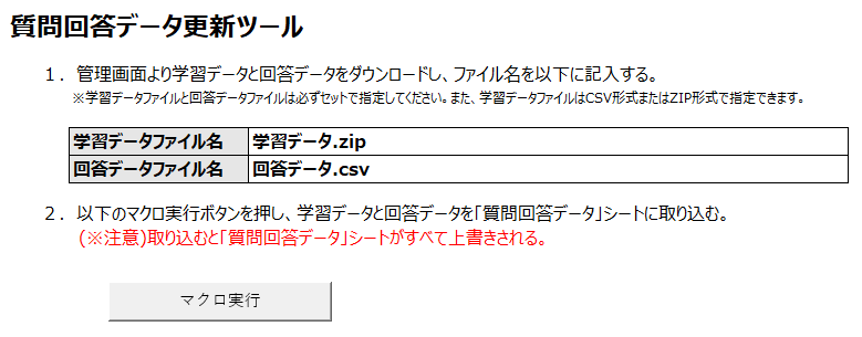 なお、コーパス学習データ作成ツールの「チャットログより質問回答データ更新ツール」にて追加される質問文は未追加の質問文のみになります。