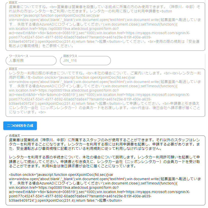 選択した類似回答文ペアの合成